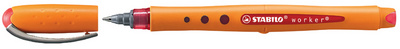 STABILO Stylo roller worker medium, rouge – largeur du tracé: 0,5 mm, capuchon avec clip, surface antidérapante, système à encre liquide, couleur du manche: orange (2018/40)