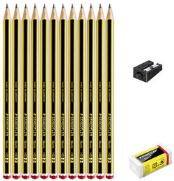 Crayon graphite Noris, pack promo de 12 + gomme & taille