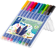 STAEDTLER Feutres triplus, étui de 10 – épaisseur de la mine: 1 mm, triangulaire, pointe résistante à la pression, encre à base d’eau, DRY SAFE, lavable, avec clip, dans un étui chevalet STAEDTLER breveté contenu : 10 feutres (323 SB10) assorti dans les couleurs: jaune, orange, rouge, magenta, bleu, bleu lumière, vert, vert jaunâtre, marron van-Dyck, noir