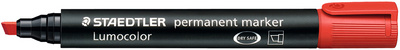 STAEDTLER Marqueur permanent 350 Lumocolor, rouge – largeur de tracé: 2 – 5 mm, pointe biseautée, résiste à l’eau, rechargeable, DRY SAFE, avec clip, manche noir / embout et capuchon dans la couleur de l’encre (350-2)
