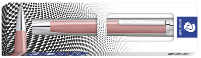 STAEDTLER Stylo bille rétractable triplus, M, rosé – corps tout en métal, forme triangulaire ergonomique, avec clip, pointe & poussoir en métal, surface du corps entière- ment laqué mat, rechargeable, couleur de tracé: bleu, recharge grande capacité adaptée type G2 (444 M20-3)