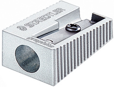 STAEDTLER Taille-crayon, en métal, argenté – lame fixée en 3 points, conduit à mine rallongé, pour crayons jusqu’à 8,2 mm de diamètre, grande échancrure pour mieux retirer les mines cassées, dimensions: (L)18 x (P)29 x (H)12 mm (510 10)