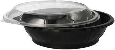 STARPAK Bol à salade avec couvercle, PET, 1.000 ml, noir – bol en plastique noir, couvercle transparent en PET (Polyethylenterephthalat), avec clip de fermeture, diamètre: 218 mm, hauteur: 60 mm contenu: 25 pièces (89121)