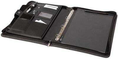 STOP Porte-documents rPET GUAM, A4, PET recyclé, anthracite – trieur & porte-documents, compartiment pour tablette rem- bourré, bandes multifonctions modulables, 6 porte-cartes de visite/cartes de crédit, 2 emplacements pour cartes SD, 2 poches de rangement flexibles, mécanisme à anneaux amovible, (46224) bloc-notes, dimensions: (L)290 x (P)40 x (H)365 mm