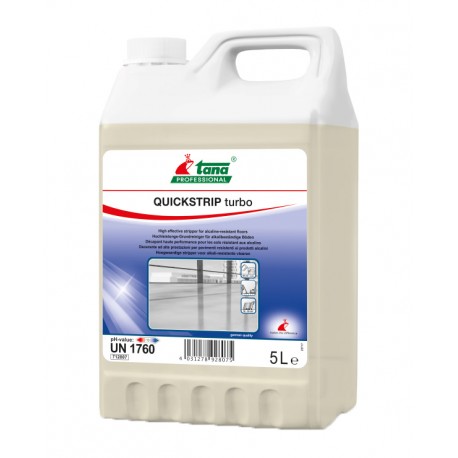 Super décapant QUICKSTRIP TURBO QUICKSTRIP TURBO est un décapant sols surpuissant à l’action rapide à appliquer sur sols résistants à l’eau et aux alcalins forts : PVC, carrelages, … Il élimine rapidement et sans effort toutes les couches de protection même sans utilisation de matériel mécanique. Ce décapant sols ne dégage pas d’odeurs lors de l’utilisation. Rapide et efficace, il est économique à l’usage. Ne pas utiliser sur du caoutchouc, du linoleum, du parquet ou un sol textile.