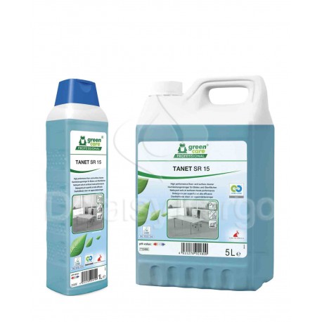 TANET SR15 est un nettoyant universel concentré Ecolabel. Le fort pouvoir mouillant de TANET SR15 permet une élimination rapide des salissures sur toutes les surfaces, les sols poreux et les sols hydrophobes sans laisser de traces.