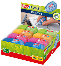 tesa ecoLogo Mini roller de correction jetable , dans un présentoir de comptoir roller de correction écologique: à 100% plastique recyclable (boîtier, sans ruban)