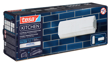 tesa KITCHEN Porte-rouleau de cuisine, blanc – en plastique, à monter horizontalement ou verticalement, capacité de charge: 5 kg max