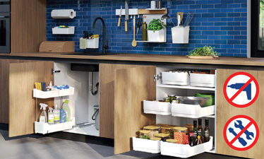 -OUT La solution maligne pour les meubles sous évier Avec le système innovant de coulisses tesa®, vous êtes mieux organisé : il suffit de tirer pour tout avoir sous les yeux
