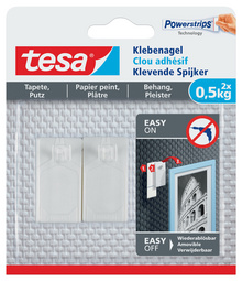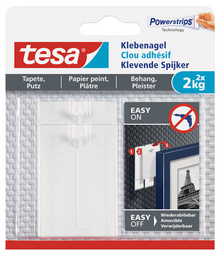 tesa Powerstrips Clou adhésif pour papier peint et plâtre – 2,0 kg, l’alternative pratique aux vis et clous, amovible et réutilisable, capacité de charge: max