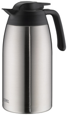 THERMOS Pichet isotherme THV, 1,5 litre, inox / noir – double paroi en inox avec isolation sous vide, maintient 12 heures au chaud / 24 heures au froid, résistant aux impacts et incassable, bouchon à vis, 100% étanche, sans revêtement intérieur, dimensions: (L)184 x (P)126 x (H)208 mm (4026