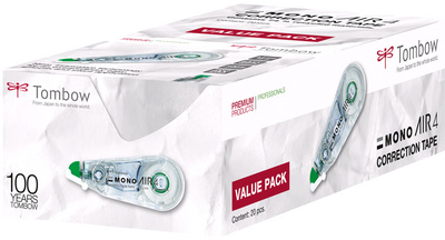 TOMBOW Rouleau correcteur “MONO air”, présentoir de 20 – 4,2 mm x 10 m, technique de déroulement centrale et inno- vante, déroulement particulièrement facilee et régulier, silencieux, pour droitiers et gauchers, sèchage immédiat, contenu: 20 pièces (CT-CA4-20) Rouleau correcteur jetable réécriture directe et propre, boîtier transparent avec capuchon, en materiel recyclé à environ 74%