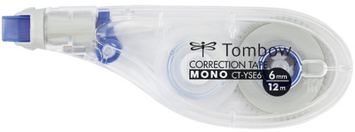 TOMBOW Rouleau correcteur “MONO CT-YSE6”, 6,0 mm x 12 m – avec correction latérale, pas de temps de séchage, réécri- ture immédiate et propre, enroulement jusqu’au dernier millimètre, boîtier transparent, pointe montée de façon flexible, sur carte blister (CT-YSE6) Rouleau correcteur jetable