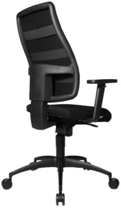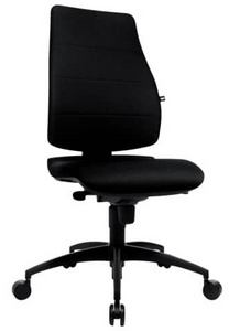 Topstar Fauteuil de bureau “Synchro Soft”, noir – revêtement: 100 % Trevira CS, hauteur réglable en continu, mécanisme synchrone à point, siège discal,piètement en croix polyamide, dimensions siège: (L)480x (P)480x (H)430 – 510mm, hauteur dossier: 650 – 710 mm, doubles roulettes de sécurité capacité: 110 kg (SN300 T38) accoudoirs optionnels type H1 (hauteur réglable): 76500265 roulettes adaptées au sol dur: 70699952