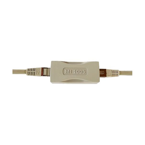 Commissioning: The Network Isolator MI 1005 can easaly be plugged into an existing network cabling by simply insert inserting. The passive electronic components do not require a separate power supply and behave completely transparently on the data network. Therefore, no installation of drivers or additional software is required.