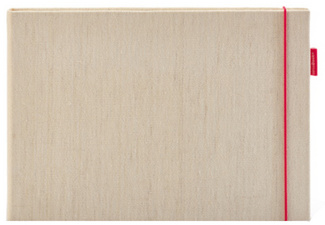 transotype Cahier à croquis “senseBook sketchpad”, A4 – format paysage, élégante couverture en lin couleur crème, élastique rouge, 80 feuilles, couché sur 2 faces, papier couleur crème, 180 g/m2, convient pour le dessin au crayon de papier, fusain, crayon de couleur, marqueur, etc