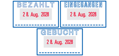 • mit zweifarbigem Stempelkissen (Text in blau, Datum in rot)