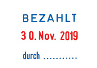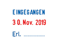 • mit zweifarbigem Stempelkissen (Text in blau, Datum in rot)