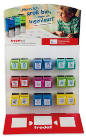 trodat Motivationsstempel “Edy Fix”, Thekendisplay – Motivabdruck: 19 x 19 mm, Motiv + Text, selbstfärbend, Motive: Stern, Faultier, Pinguin, Frosch, Lama, Einhorn, Drache, Biene, Smiley, Farben sortiert beinhaltet: 18 Stempel (153379)