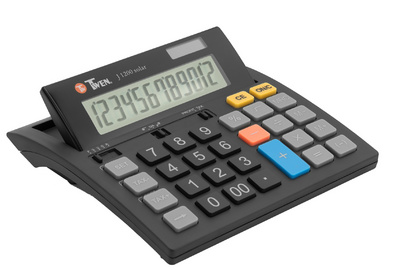 TWEN Calculatrice de bureau J-1200 solar, 12 carac. – écran LC pivotant, alimenté par le soleil et les piles, arithmétique de bases, changement de signe, calcul d’intérêt fonction mémoire, fonction business, calcul de taxes, dimensions: (L)144 x (P)149 x (H)25mm, poids 174g boîtier en matériaux recyclés (TW J-1200 solar)