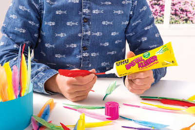 UHU Présentoir scolaire 2025: Colle pour loisirs créatifs – transparent après séchage, colle tous les matériaux tels que papier, carton, textile, fleurs séchées et en soie, feutre, raphia, liège, etc