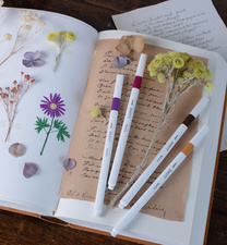 uni-ball Feutres EMOTT, set de 5 “Secret Garden” – encre pigmentée à base d’eau, inaltérable, pointe ultra- résistante blanche, largeur de tracé: 0,4 mm, corps carré blanc, zone de préhension de la couleur du tracé, contenu: 5 feutres (PEMSY/5 20) pour colorer, dessiner et écrire assorti dans les couleurs: pine green (77), fuchsia (11), red wine (60), cork (29), dark brown (22)