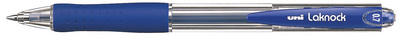 uni-ball Stylo bille rétractable Laknock, extra large, bleu – largeur de tracé: 0,55 mm, diamètre de la bille: 1,4 mm, à 70% de matière recyclé, grip caoutchouté, rechargeable (SN100/14 B)