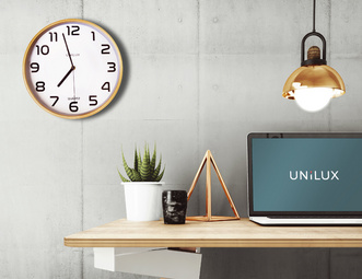 UNiLUX Horloge murale à quartz “BALTIC”, diamètre: 300 mm – marron, chiffres en noir, cadre en bois, avec trotteuse0, graphisme fin fonctionnement par pile: mignon AA – non fourni (400094591)