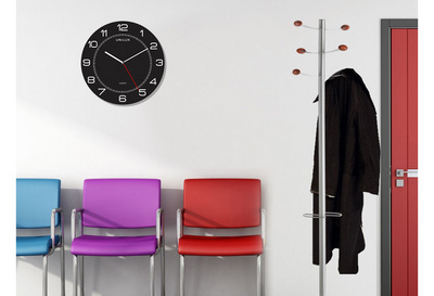 UNiLUX Horloge murale à quartz “MEGA”, diamètre: 600 mm – noir, cadran noir, chiffres en blanc, super grand, avec trotteuse en rouge, cadre en plastique, fonctionnement par pile: mignon AA – non fourni (400094568)