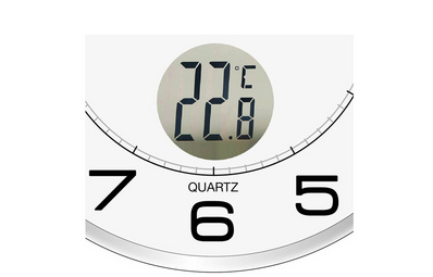 UNiLUX Horloge murale à quartz “TEMPUS”, diamètre: 300 mm – argent, chiffres en noir, avec affichage LCD de la température intérieure, avec trotteuse, cadre en plastique, fonctionnement par pile: mignon AA – non fourni (400094592)