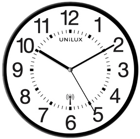 UNiLUX Horloge murale radio-pilotée “MAXI WAVE”, noir – diamètre: 380 mm, radio-pilotée, grands chiffres pour une bonne visibilité, avec trotteuse, cadre en palstique, extra grand, fonctionnement par pile: mignon AA – non fourni (400094564)
