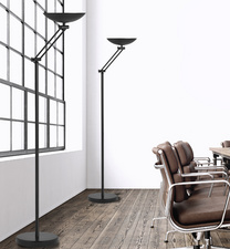 UNiLUX Lampadaire à LED FIRST ARTICULATED, noir – puissance: 24W, consommation d’énergie pondérée: 22kWh/1000h flux lumineux: 2400 lumens, température de couleur: 3000K blanc chaud, indice de rendu de couleur minimal: >80 Ra, durée de vie: 40