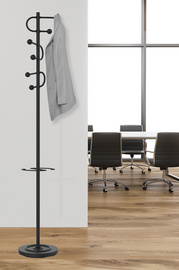 UNiLUX Portemanteau STUDIO, hauteur: 1.750 mm, noir – design moderne, 6 patères, socle lesté, capacité de charge par patère: 8 kg, avec porte-parapluie, mât en acier, patères en plastique ABS, porte-parapluie en polypropylène (400189489)