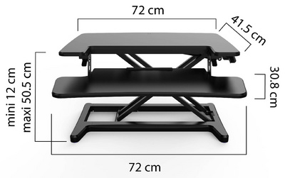UNiLUX Poste de travail assis-debout ERGO DESK 2, noir – structure en acier, support d’écran ajustable, ressort pneumatique pour régler facilement la hauteur, tablettes séparées pour le clavier et la souris, hauteur réglable de 120 mm à 505 mm, dimensions: (L)720 x (H)590 mm, (400124576) profondeur de la tablette pour clavier: 308 mm