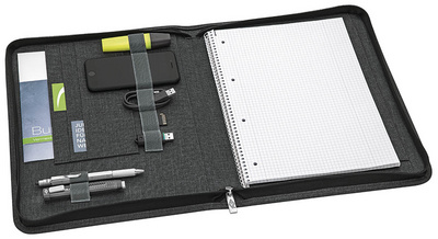 WEDO Conférencier COLLEGE, A4, polyester, gris – aspect toilé, compartiment d’insertion pour blocs à spirale en haut ou de côté ou pour blocs collés standard, de nombreux compartiments de rangement, 2 passants à stylo, 5 autres passants, fermeture à zip périphérique (58 351412) livré non équipé, dimensions: (L)285 x (P)40 x (H)355 mm