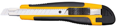 WEDO Cutter universel, lame: 9 mm, noir/jaune – zone grip caoutchoutée, casse-lame, corps plastique ABS, guide-lame en métal, glissière avec blocage automatique de la lame, incl