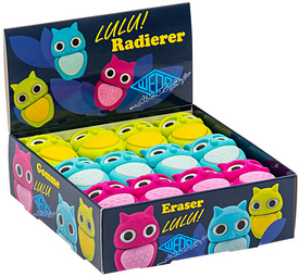 Gomme en plastique hibou “LULU”, présentoir de 24 Des gommes mignonnes en forme de hibou !