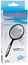 WEDO Loupe avec manche, ronde, diamètre: 74 mm – loupe ronde avec lentille en plastique, petite lentille supplémentaire intégrée, agrandissement: 2 et 4 fois, dimensions: (L)86 x (P)17 x (H)187 mm livrée dans un carton pegbordable (271 7509)