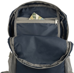 • poche frontale séparée et compartiment intérieur avec fermetures à glissière