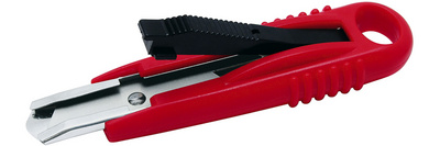 • retrait automatique de la lame: les lames sont équipées de ressorts et disparaissent automatiquement lorsque la lame glisse de l’objet (ne pas toucher le manche pendant la coupe)