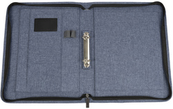 WEDO Serviette classeur “DENIM”, A4, en polyester, bleu mêlé – 2 anneaux, livré sans bloc-note, bloc-notes enchâssé des 4 côtés, fermeture à glissière sur le pourtour, polyester simple d’entretien avec finition toilée, avec inserts et passants élastiques, dim