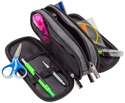 WEDO Trousse College, polyester, gris – grand compartiment intérieur, 5 passants pour stylos, 3 compartiments à filet ouverts, 1 compartiment à filet avec zip de fermeture, 2 compartiments pour carte à l’intérieur & 2 à l’extérieur, (242 45037) dimensions: (L)230 x (P)120 x (H)80 mm
