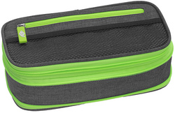 WEDO Trousse NEON Stretch avec rabat intérieur, vert fluo – gris avec zip de couleur fluo, le parfait rangement, non garni, en polyester, deux niveaux, grand compartiment principal, avec passants sur le rabat intérieur avec emploi du temps dans le compartiment du couvercle, (242 44011) dimensions : (L)230 x (P)120 x (H)45 – 80 mm