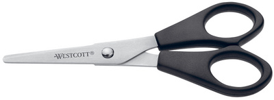 WESTCOTT Ciseaux de bureau, longueur: 130 mm, noir – droitiers, symétrique, droit, arrondi, lame en acier inoxydable, poignée en plastique, ciseaux universels (E-31150 00)