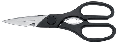 WESTCOTT Ciseaux multi-usage, longueur: 210 mm, noir – microdenture, symétrique, droit, lame en acier inoxydable, avec ouvre-bouteille et microdenture sur les lames, poignée ergonomique en plastique, ciseaux universels (E-30100 00)