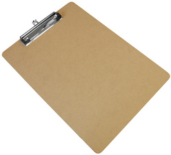 Wonday Porte-bloc, panneau en fibre de bois MDF, A4 – pince plate nickelée, avec oeillet de suspension, dimensions: (L)227 x (P)10 x (H)315 mm, épaisseur de la plaque: 3 mm (GPB040441)